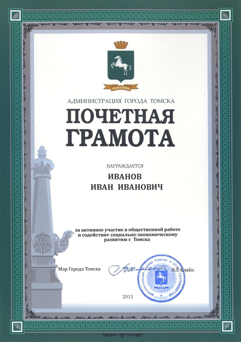 за добросовестный плодотворный труд, значительный личный вклад в развитие теплоэнергетического комплекса города Новокузнецка.