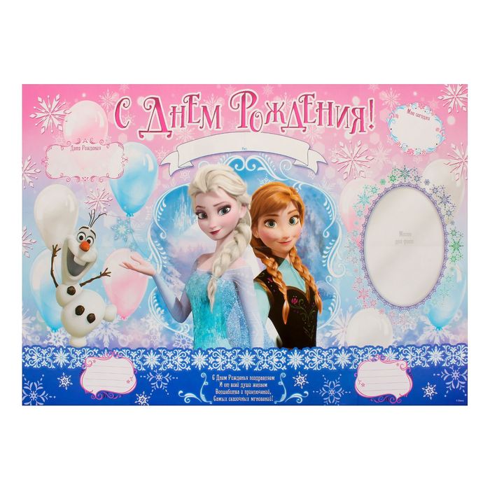 Плакат на день рождения «Холодное сердце» размер — 75х120 см. + тубус