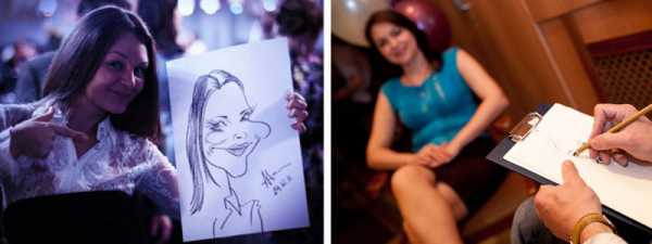 Художники могут и не просить ваших коллег позировать, просто делают портреты во время банкета и развлекательной программы. Один шаржист успевает делать 5-7 портретов за час, поэтому, если пригласить несколько веселых художников, ваши гости получат много индивидуальных подарков.