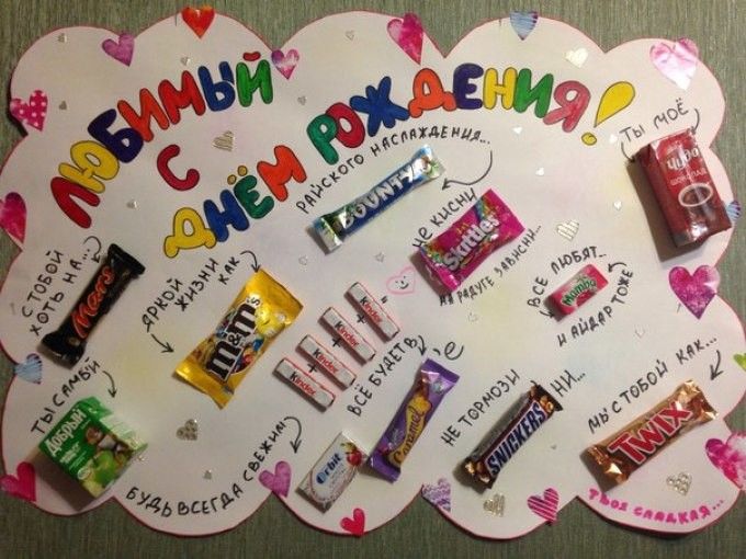 - Можно сделать баночку с сюрпризом, на дно которой положить основной подарок, а сверху кучу бумажечек на тему: «почему я люблю тебя».