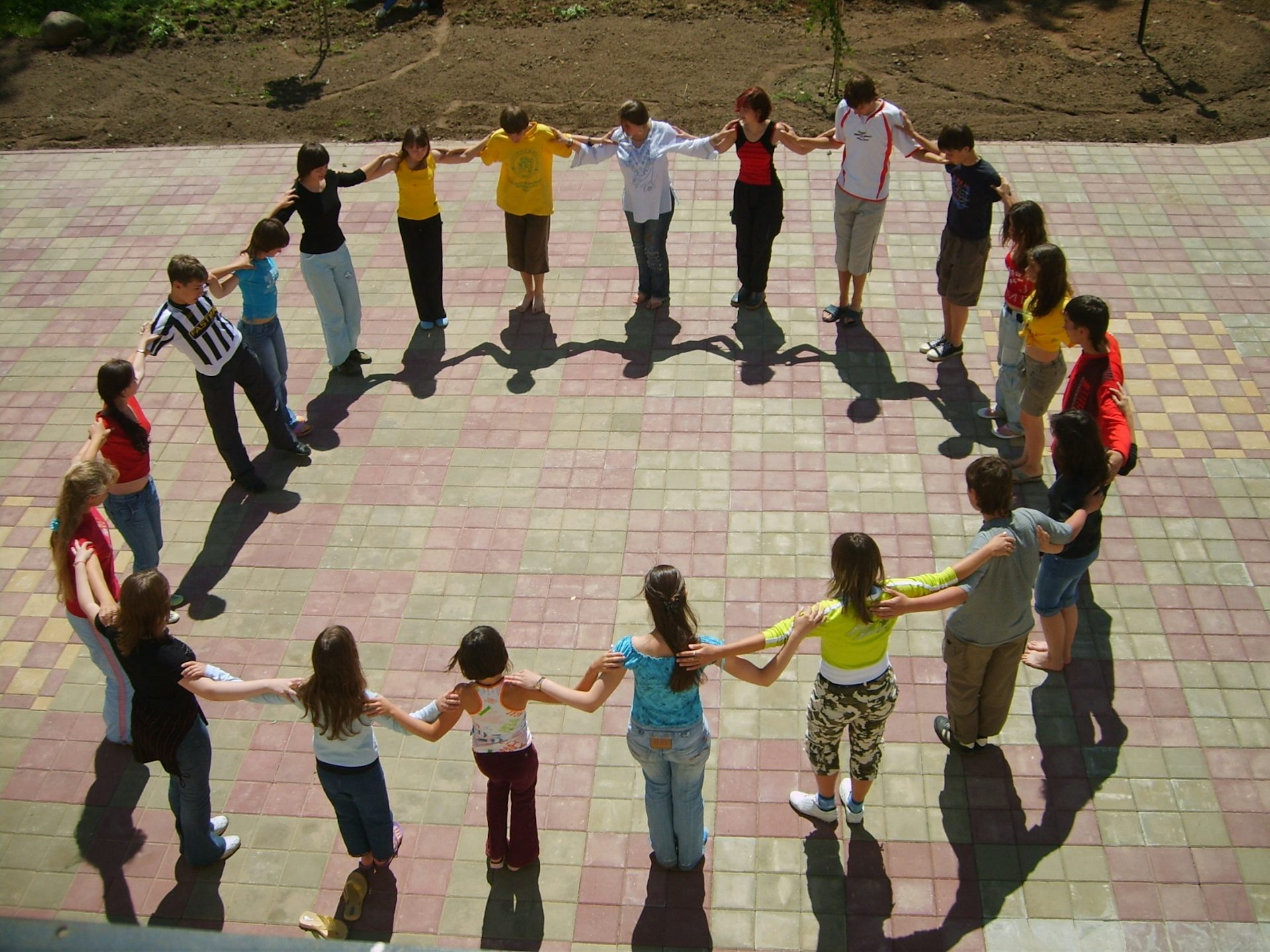 - Проводя игры в круг для детей , попросите группу взяться за руки и медленно идти назад, пока не образуется круг и их руки полностью выпрямлены (как на картинке). Взрослым это вообще не нужно 🙂