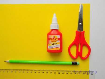 Из бумаги желтого цвета вырежем прямоугольник с размерами 25х15 см.