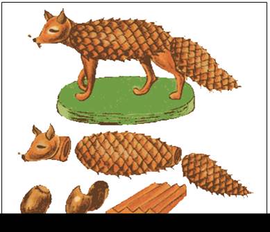 Придя домой, посмотрите, что вы собрали. Приготовьте продолговатую большую шишку для туловища лисички, шишку поменьше – для ее лисьей головы.