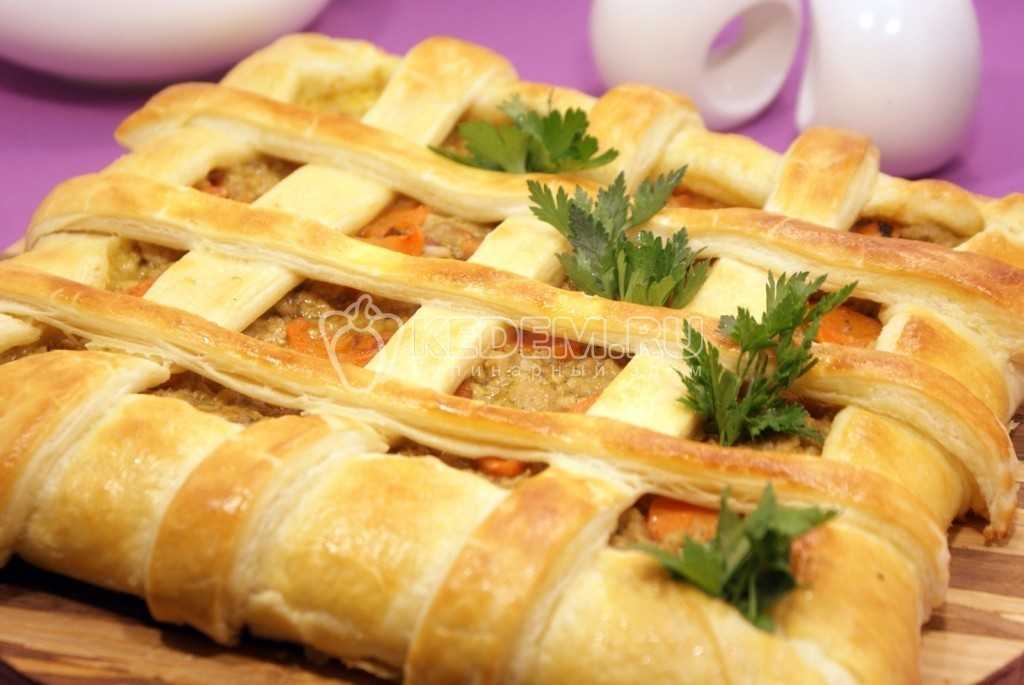 Пирог из слоеного теста с капустной начинкой, пошаговый рецепт на 3607 ккал, фото, ингредиенты