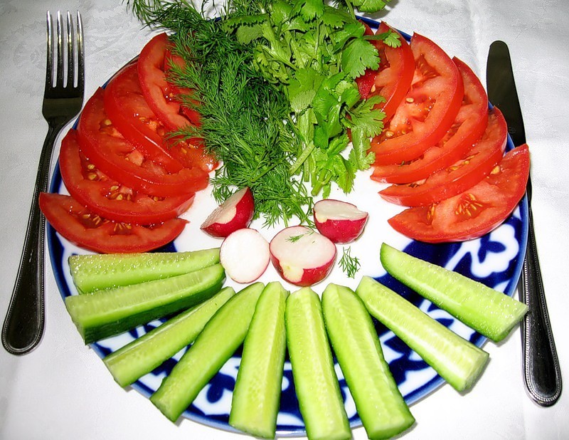 У нас в стране очень любят так называемые овощные нарезки. Как правило, это большие плоские блюда, на которые уложены овощи, нарезанные тонкими пластинами или аккуратными ломтиками.