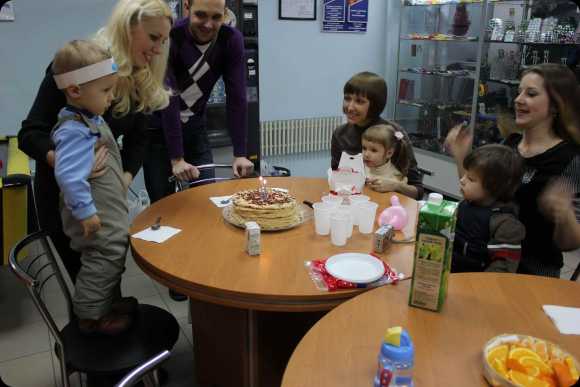 После того как именинник наш проснулся, умылся и почистил зубы, мы его под веселую музыку завели в зал.