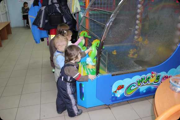 Отведав вкусного тортика, пора и порезвиться. Водные игровые автоматы пришлись нам по душе.