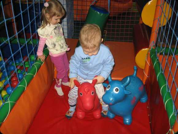 Немножко поразмыслив и поговорив с друзьями, мы решили сделать детский День рождения и пригласили друзей с детьми в развлекательный комплекс с надувными батутами, детскими лесенками и горками, и с сухим бассейном.