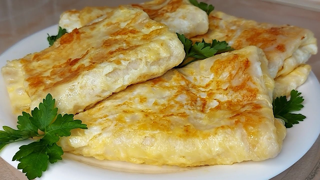 3. Яйца солю и взбиаю венчиком, каждый конверт из лаваша хорошо обмакиваю в яйце и обжариваю с двух сторон.