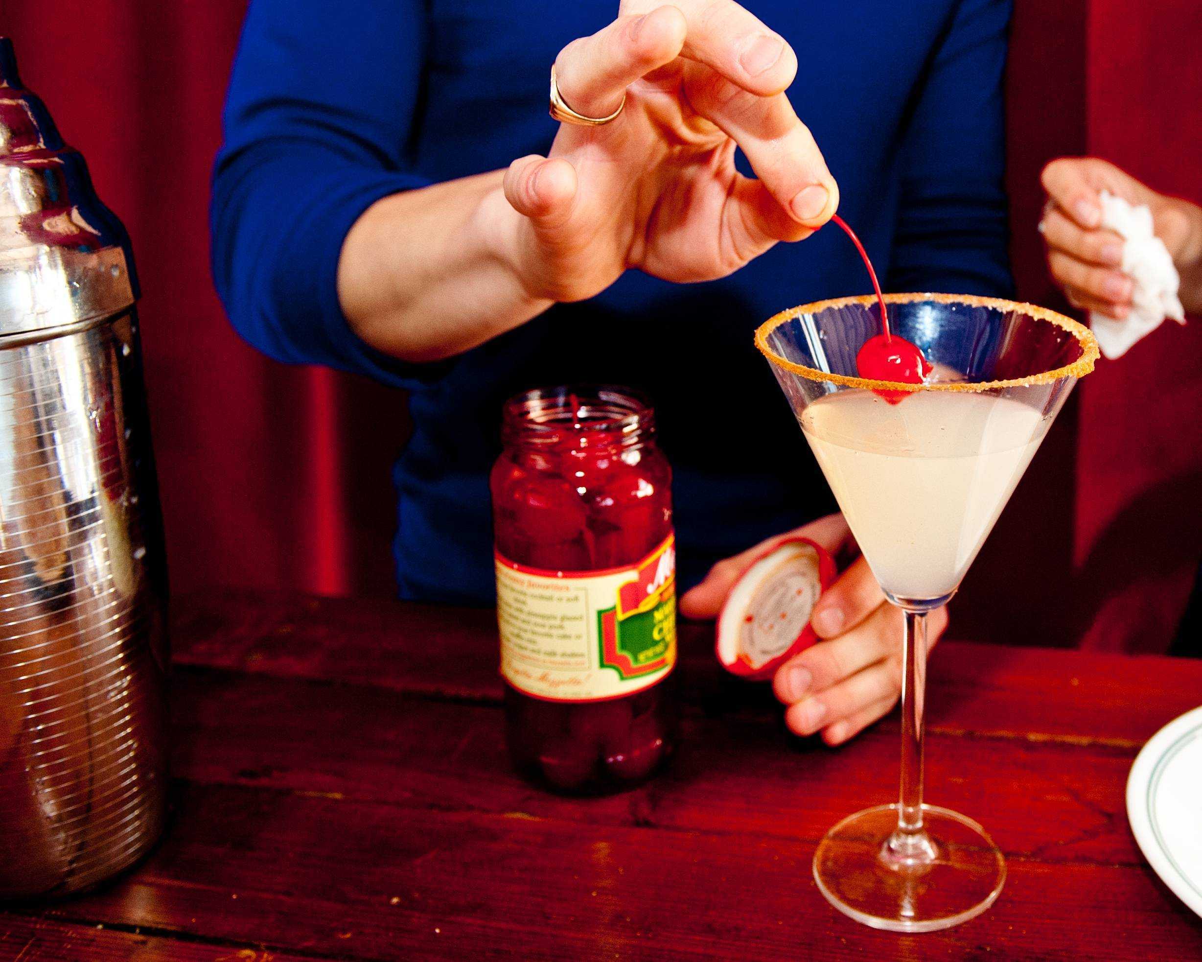 Представьте себе, что вы пьете рождественский пирог — этот мартини будет таким, каким он будет на вкус. С бурбоном и вишневым бренди, а также с сиропом из сухофруктов, это восхитительный праздничный напиток