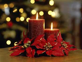 Новогодние маленькие свечки также могут отличаться от друг-друга размерами и даже запахами. Например, широкие свечи удобны тем, что они очень легко устанавливаются. Достаточно будет просто обложить их дополнительными элементами декорирования — бусами, игрушками, лентами. А составленные композиции или готовые наборы будут удачно красоваться в центре праздничного стола.