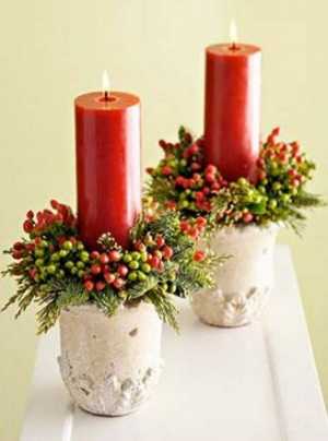 6. В период новогодних и рождественских праздников можно добавить к свечам глянцевую гирлянду или веточку ели.