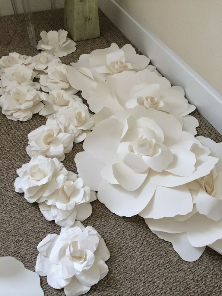 Если вы планируете сделать несколько цветов для фотофона или другого декоративного элемента, возьмите с собой горничных и устройте веселую ночь. Сначала вырежьте все лепестки и разложите их по размеру.