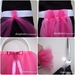 3. Затем нарезанные полоски обвязываете вокруг ленты на узелок. Постарайтесь сильно не затягивать узел, нам нужно, чтобы кольца, получившиеся вокруг ленты, могли свободно по ней скользить. Если у вас низкий стол, тогда оба конца у вас будут примерно одной длины. Если стол высокий и ширины фатина не хватает, то делайте один конец покороче, а другой подлиннее, таким образом, чтобы ленты могли покрыть начало стола до пола. Вы получите интересную фактуру, если скомбинируете пару-тройку разных цветов вместе, но однотонные юбки-пачки тоже смотрятся замечательно.
