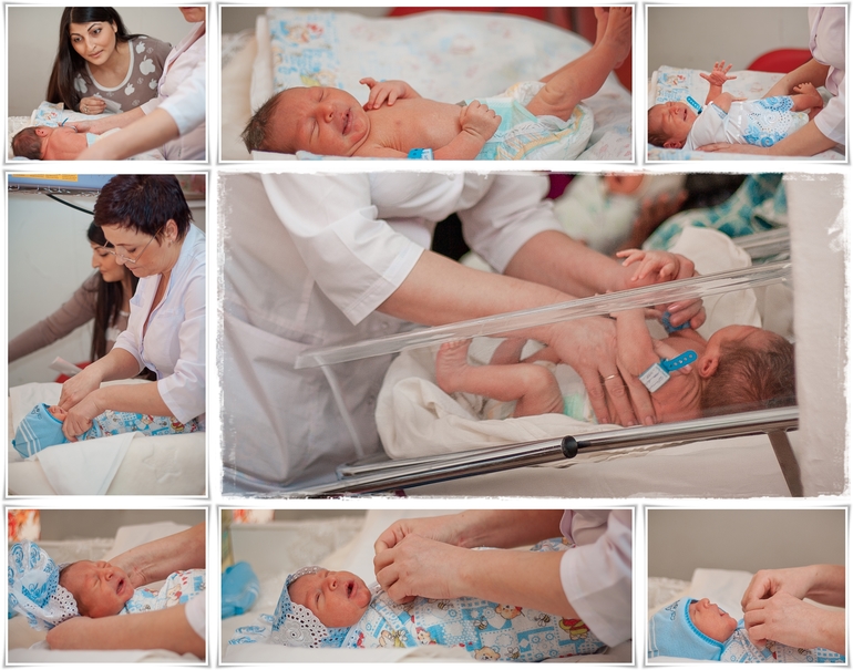 Желательно накануне сообщить в роддоме о том, что вы планируете снимать малыша и маму. Как правило, роддома позволяют и съёмку в приемной, где одевают малыша.