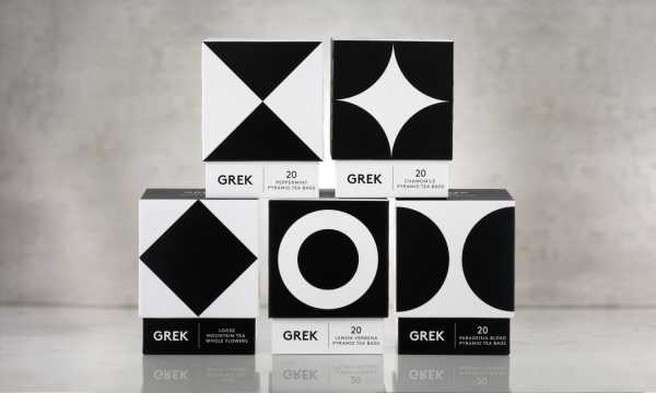 Дизайнеры студии interabang создали упаковку для новой чайной компании, импортирующей высококачественный греческий чай наполненный эфирными маслами, солнечной энергией и ароматическими веществами. В студии вдохновились черно-белыми орнаментами острова Хиос.