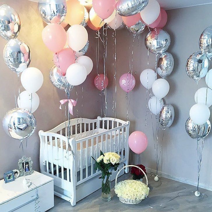 - Шарики и цветы. Банально, но новоиспеченная мама оценит. А еще лимузин, который отправит всех домой, впрочем, подойдет и папина машина с надписью «Приехал за дочкой/сыном». Кстати, букет может быть съедобным или сделанным из мягких игрушек.