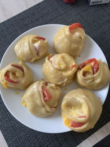 - Хлеб можно совместить с колбаской и огурцом, или добавить кубик сыра.