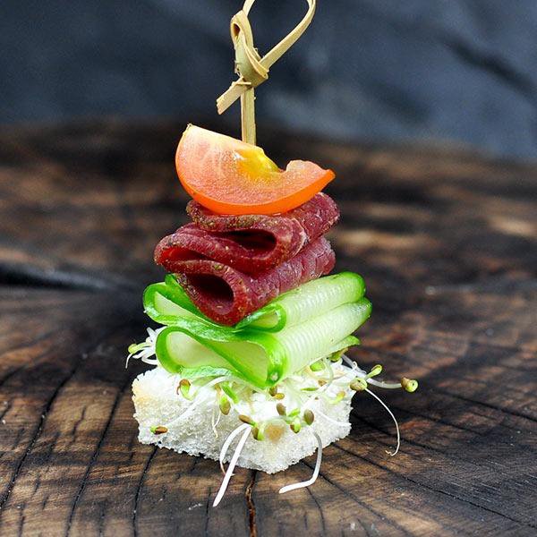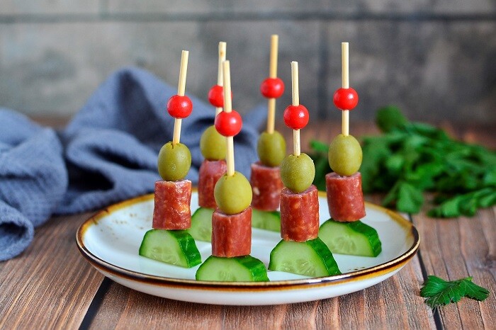 Канапе с колбаской и огурцом