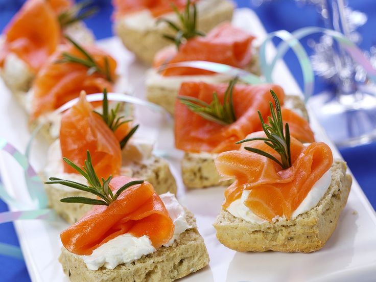 Они предназначены для подачи на вечеринку, но если вы хотите подать их как еду с несколькими гарнирами, то мы вам поможем. Канапе с копченым лососем идеально сочетаются со следующими блюдами: