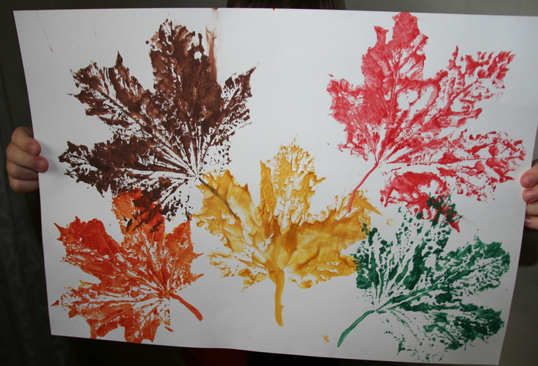 Подложите что-нибудь под шедевр из осенних листьев, чтобы собрать капающую краску.