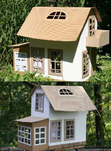 Домик из картона можно выполнить в следующих вариантах:
