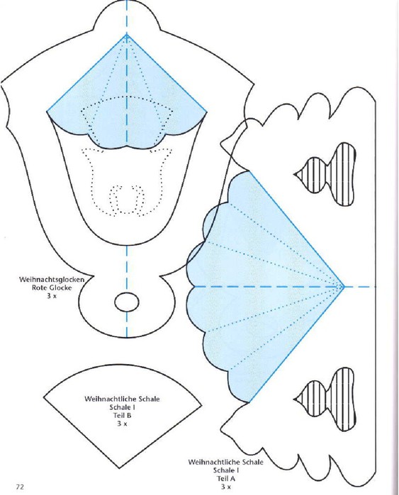 Можно смастерить своими руками фигурные фонарики из бумаги на Новый год, описание которых со схемой приведено далее. Процесс создания такого новогоднего чуда очень схож с предыдущим описанием.