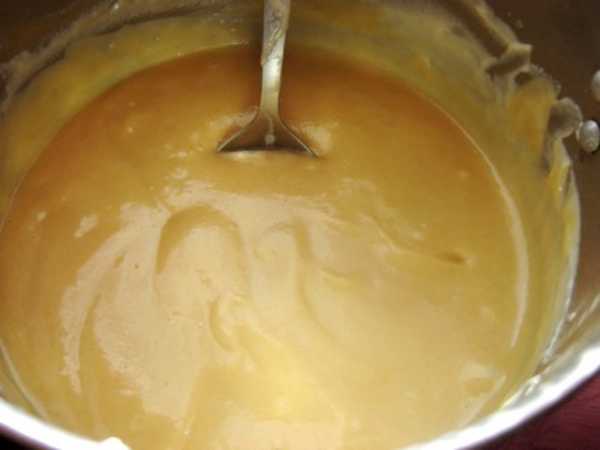 ΠΠΎΡΡΠ°Π²ΡΡΠ΅ Π½Π° ΠΏΠ»ΠΈΡΡ ΠΌΠΎΠ»ΠΎΠΊΠΎ, ΠΏΠΎΠΊΠ° ΠΎΠ½ΠΎ Π±ΡΠ΄Π΅Ρ Π·Π°ΠΊΠΈΠΏΠ°ΡΡ, ΡΠΌΠ΅ΡΠ°ΠΉΡΠ΅ ΠΈ Π²Π·Π±Π΅ΠΉΡΠ΅ ΡΠ°Ρ Π°Ρ Ρ ΠΆΠ΅Π»ΡΠΊΠ°ΠΌΠΈ ΠΈ Π²Π°Π½ΠΈΠ»ΠΈΠ½ΠΎΠΌ. ΠΠΎΠ±Π°Π²ΡΡΠ΅ ΠΌΡΠΊΡ, ΡΠΎΠ·Π΄Π°ΠΉΡΠ΅ ΠΌΠ°ΡΡΡ Π±Π΅Π· ΠΊΠΎΠΌΠΊΠΎΠ². Π’Π΅ΠΏΠ΅ΡΡ ΡΡΠ΄Π° Π΄ΠΎΠ±Π°Π²ΡΡΠ΅ 70-100 Π³ Π³ΠΎΡΡΡΠ΅Π³ΠΎ ΠΌΠΎΠ»ΠΎΠΊΠ°, ΡΡΠΎΠ±Ρ ΠΏΡΠΈΠ΄Π°ΡΡ ΠΌΠ°ΡΡΠ΅ ΡΠ΅ΠΊΡΡΠ΅ΡΡΡ.