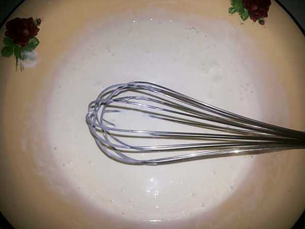 - ΠΠΎΠ»ΠΎΠΊΠΎ Π½Π°Π³ΡΠ΅Π²Π°Π΅ΠΌ Π½Π° ΠΏΠ»ΠΈΡΠ΅. ΠΠΈΠΊΡΠ΅ΡΠΎΠΌ ΡΠΎΠ΅Π΄ΠΈΠ½ΡΠ΅ΠΌ ΡΠ°Ρ Π°Ρ Ρ ΡΠΉΡΠ°ΠΌΠΈ, ΠΏΠΎΡΠ»Π΅ Π΄ΠΎΠ±Π°Π²Π»ΡΠ΅ΠΌ Π½Π΅ΠΌΠ½ΠΎΠ³ΠΎ ΠΌΠΎΠ»ΠΎΠΊΠ° ΠΈ Π²ΡΡΠΏΠ°Π΅ΠΌ ΠΌΡΠΊΡ, ΠΌΠ°ΡΡΡ ΡΠ½ΠΎΠ²Π° Π²Π·Π±ΠΈΠ²Π°Π΅ΠΌ. ΠΠ°Π»Π΅Π΅ ΡΠΎΠ½Π΅Π½ΡΠΊΠΎΠΉ ΡΡΡΡΠΉΠΊΠΎΠΉ Π½Π΅Π±ΠΎΠ»ΡΡΠΈΠΌΠΈ ΠΎΠ±ΡΠ΅ΠΌΠ°ΠΌΠΈ Π΄ΠΎΠ±Π°Π²Π»ΡΠ΅ΠΌ Π² ΠΌΠΎΠ»ΠΎΠΊΠΎ ΡΠΈΡΠ½ΡΡ ΡΠΌΠ΅ΡΡ, Π²Π°ΡΠΈΠΌ Π΄ΠΎ Π·Π°Π³ΡΡΡΠ΅Π½ΠΈΡ. Π Π½Π΅Π³ΠΎΡΡΡΠΈΠΉ ΠΊΡΠ΅ΠΌ Π²ΡΠΊΠ»Π°Π΄ΡΠ²Π°Π΅ΠΌ ΠΌΠ°ΡΠ»ΠΎ, ΡΡΠ°ΡΠ΅Π»ΡΠ½ΠΎ ΠΏΠ΅ΡΠ΅ΠΌΠ΅ΡΠΈΠ²Π°Π΅ΠΌ.