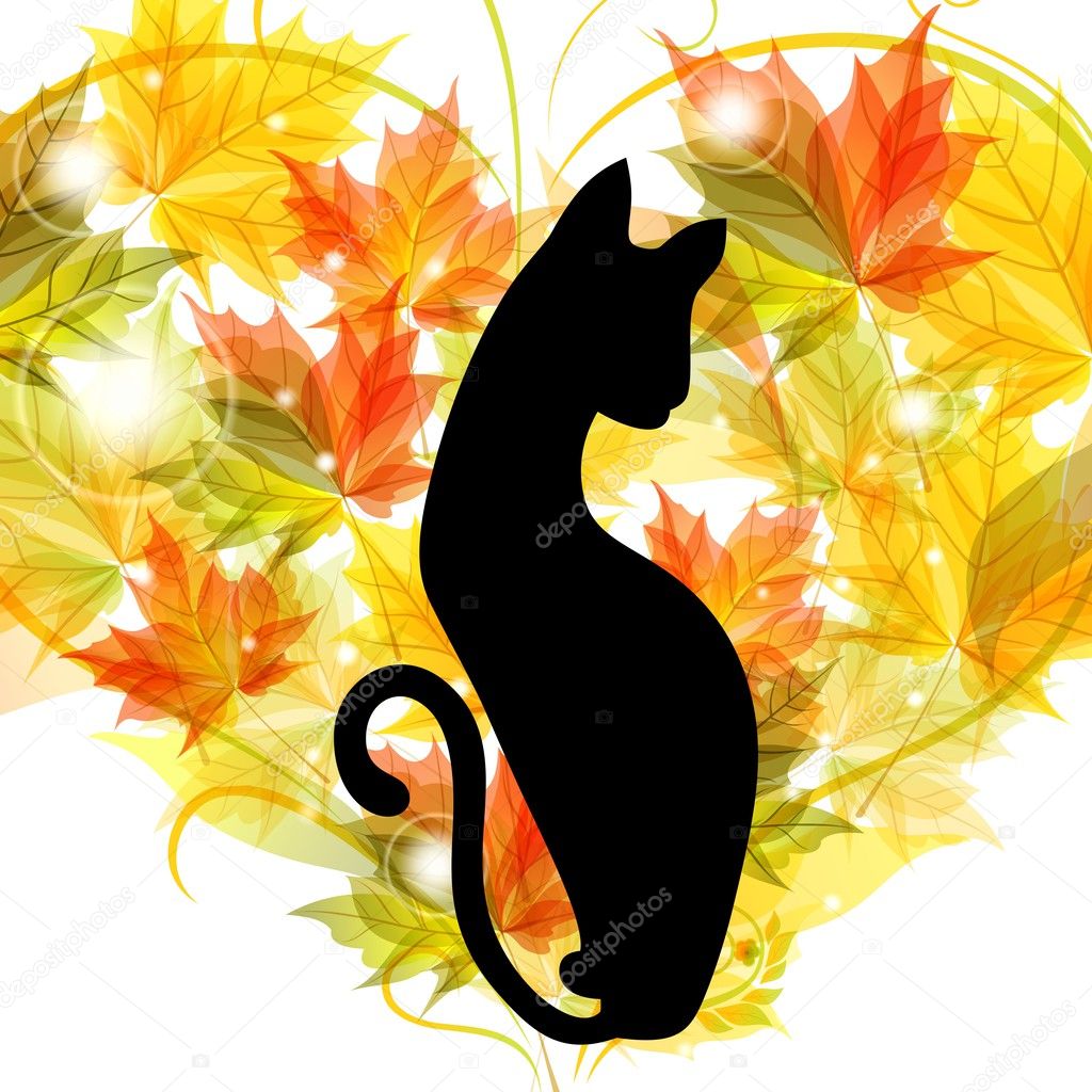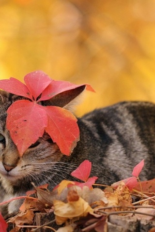 осень, листья, кот, лист, осенние листья, осенний лист, золотая осень, природа