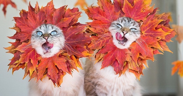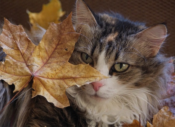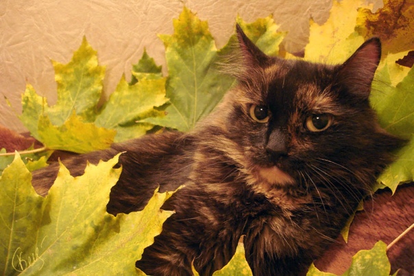 Котик поиграть с листвою рад. (Корнелия)