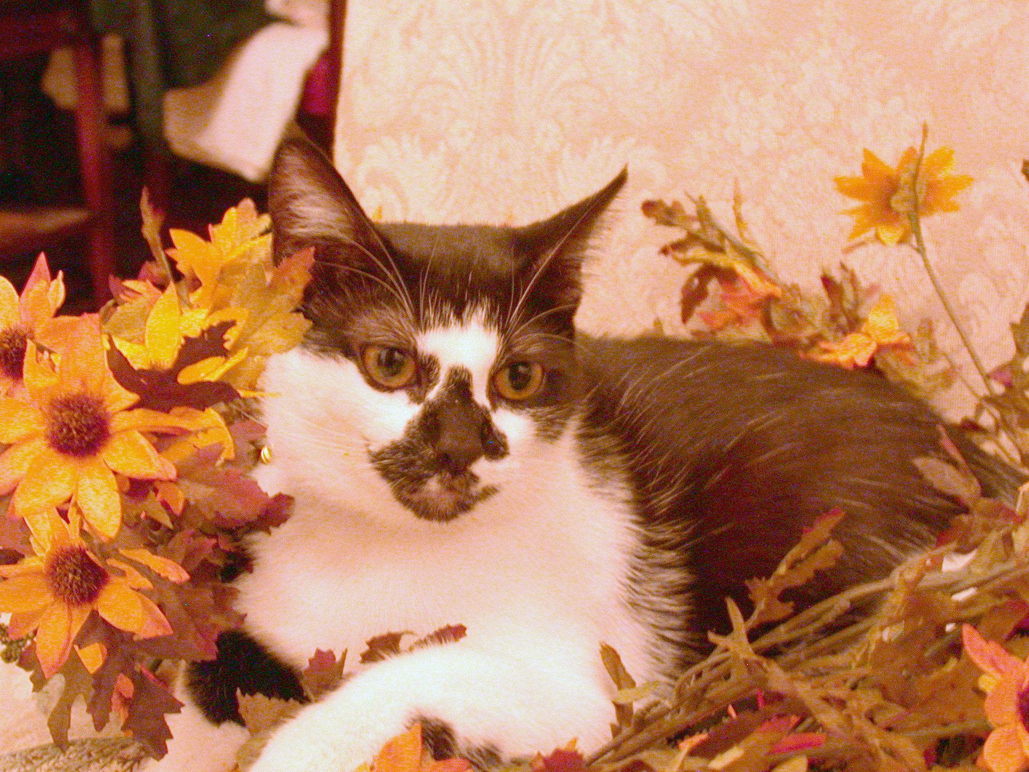 - 4824x3216px черный, кот, цветы, живопись, Черная кошка, розы, домашнее животное, животноеPublic Domain