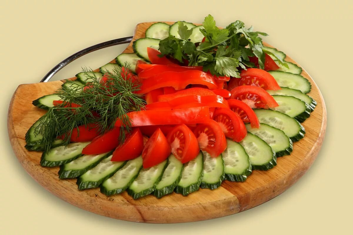 Как красиво нарезать помидоры и огурцы на стол, выложить нарезку (+фото пошагово)