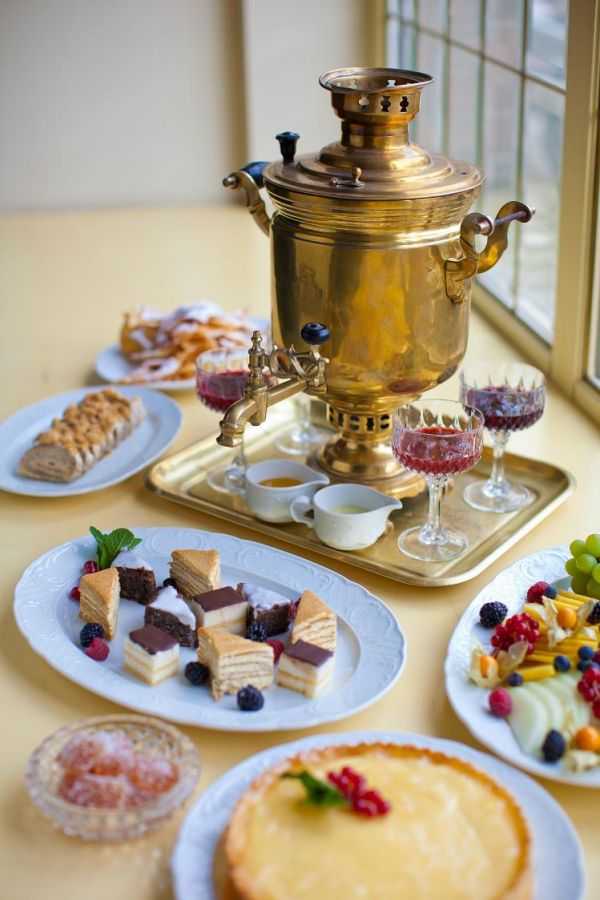 Π§Π°ΠΉΠ½Π°Ρ ΠΏΠΎΡΡΠ΄Π°, ΡΠ°ΠΌΠΎΠ²Π°Ρ ΠΈΠ»ΠΈ ΡΠ°ΠΉΠ½ΠΈΠΊ Ρ ΠΊΠΈΠΏΡΡΠΊΠΎΠΌ, Π° ΡΠ°ΠΊΠΆΠ΅ ΡΠ°Ρ Π°ΡΠ½ΠΈΡΠ° Π΄ΠΎΠ»ΠΆΠ½Ρ ΡΡΠΎΡΡΡ ΡΠΏΡΠ°Π²Π° ΠΎΡ ΡΠΎΠ³ΠΎ ΠΌΠ΅ΡΡΠ°, Π³Π΄Π΅ Π±ΡΠ΄Π΅Ρ ΡΠΈΠ΄Π΅ΡΡ Ρ ΠΎΠ·ΡΠΉΠΊΠ°. ΠΠ½Π° ΡΠ°Π·ΠΎΠ»ΡΠ΅Ρ ΡΠ°ΠΉ ΠΏΠΎ ΡΠ°ΡΠΊΠ°ΠΌ ΠΈ ΠΏΠ΅ΡΠ΅Π΄Π°ΡΡ Π³ΠΎΡΡΡΠΌ. ΠΡΠΎΠΌΠ΅ Π²ΡΠΏΠ΅ΡΠΊΠΈ ΠΈ Π΄Π΅ΡΠ΅ΡΡΠΎΠ², ΠΊ ΡΠ°ΠΉΠ½ΠΎΠΌΡ ΡΡΠΎΠ»Ρ ΠΌΠΎΠΆΠ½ΠΎ ΠΏΠΎΠ΄Π°ΡΡ Π»Π΅Π³ΠΊΠΎΠ΅ Π²ΠΈΠ½ΠΎ, Π»ΠΈΠΊΠ΅Ρ, ΠΊΠΎΠ½ΡΡΠΊ ΠΈΠ»ΠΈ ΡΠΎΠΌ. Π ΡΡΠΎΠΌ ΡΠ»ΡΡΠ°Π΅ Π² ΠΊΠ°ΡΠ΅ΡΡΠ²Π΅ Π·Π°ΠΊΡΡΠΊΠΈ ΠΆΠ΅Π»Π°ΡΠ΅Π»ΡΠ½ΠΎ ΠΏΡΠΈΠ³ΠΎΡΠΎΠ²ΠΈΡΡ Π±ΡΡΠ΅ΡΠ±ΡΠΎΠ΄Ρ Ρ ΠΌΠ°ΡΠ»ΠΎΠΌ, ΡΡΡΠΎΠΌ ΠΈ ΠΌΡΡΠΎΠΌ.