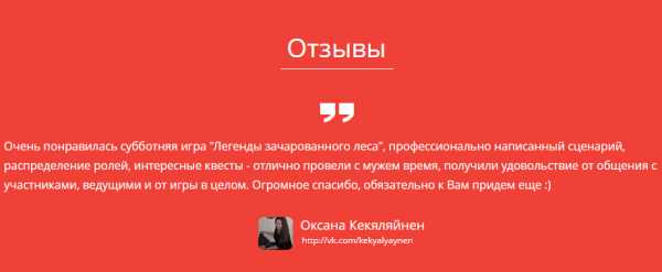 Волшебные миры: Атака БездныЖанр: приключения Стоимость с команды: от 3000 р. Подробнее об игре>> | Сказочный переполохЖанр: ролевой квест, приключения Стоимость с команды: от 3000 р. Подробнее об игре>> |