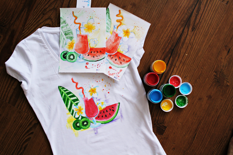 Именно поэтому огромную популярность за последнее время приобрела роспись на футболках акриловыми красками.