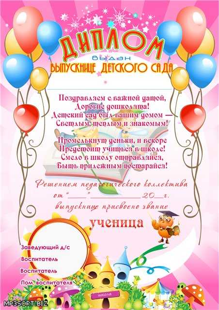 Шаблоны грамот и дипломов на выпускной в детском садике | Материнство