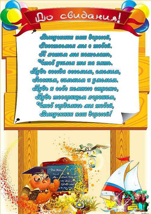 Больше вариантов поздравлений в стихах смотрите в нашей подборке: Стихи для выпускного в детском саду.