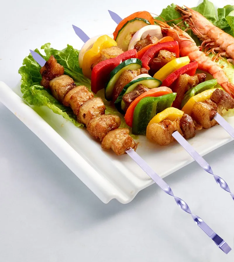 Блюда на шпажках готовят и подают двумя способами – вертикально и горизонтально. В первом случае блюдо напоминает канапе, среди горячих блюд таким способом подают тефтели. Во втором случае блюдо подается горизонтально, например, так готовят шашлык и кебаб.