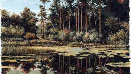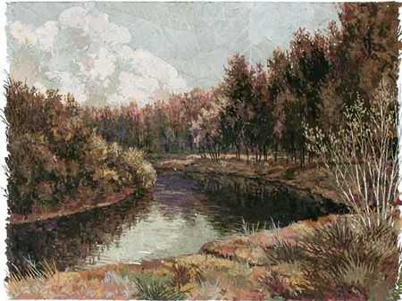 Такую технику и ее название придумал Александр Юрков (1935 г.р.). В течение двадцати пяти лет он ее совершенствовал, за это время успел «написать» более сотни разных картин. Даже трудно сказать, что ему удается лучше – портреты, пейзажи, изображения животных … Действительно, талантливому человеку любая картина удается.