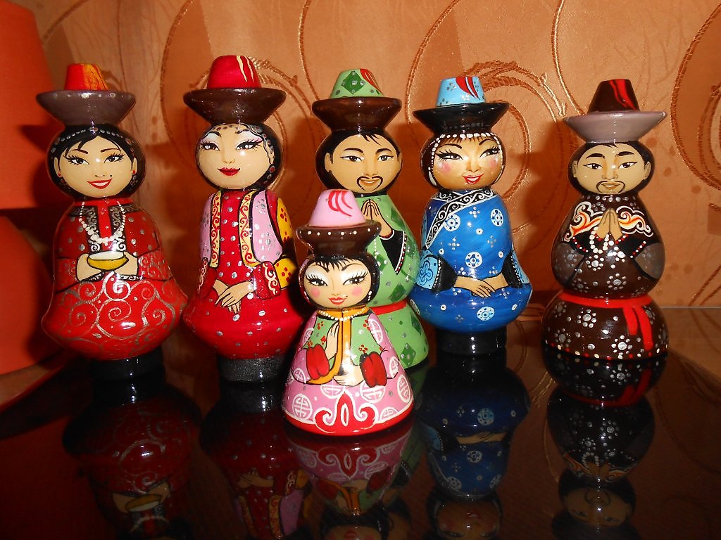 Куклы в казахских национальных костюмах — еще один символ, который можно подарить всем, независимо от возраста. Сувенирные куколки бывают тряпичными, деревянными, пластмассовыми.