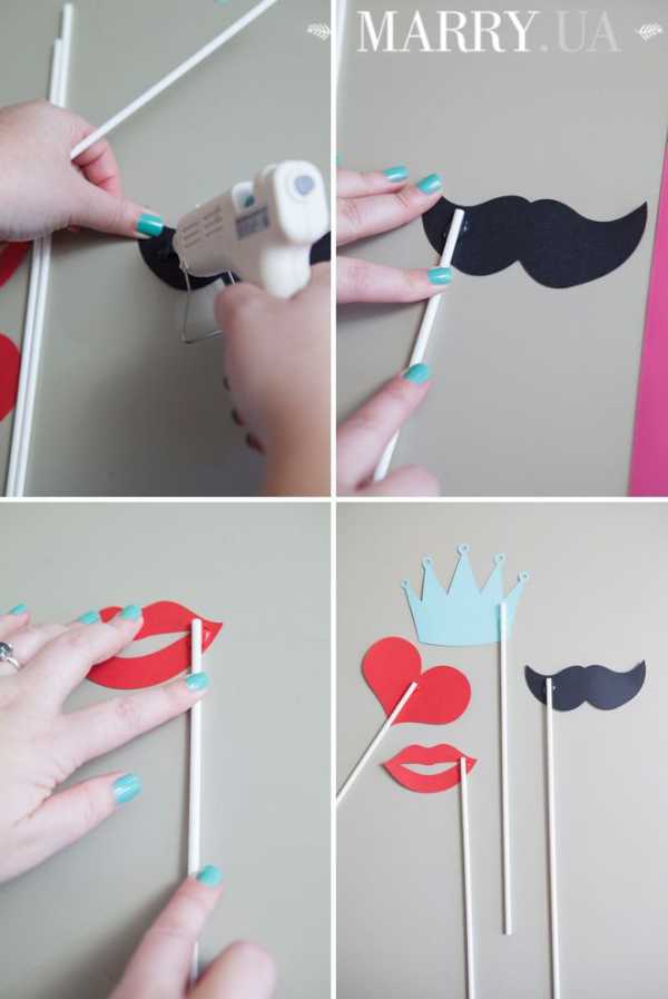 Данный аксессуар на свадьбе позволяет разнообразить торжество, фотографии получаются яркими, точно передающими настроение. Гости по достоинству оценят старания молодоженов. Как вы видите, сделать свадебную бутафорию своими руками не сложно и при этом изготовление не займет много времени!