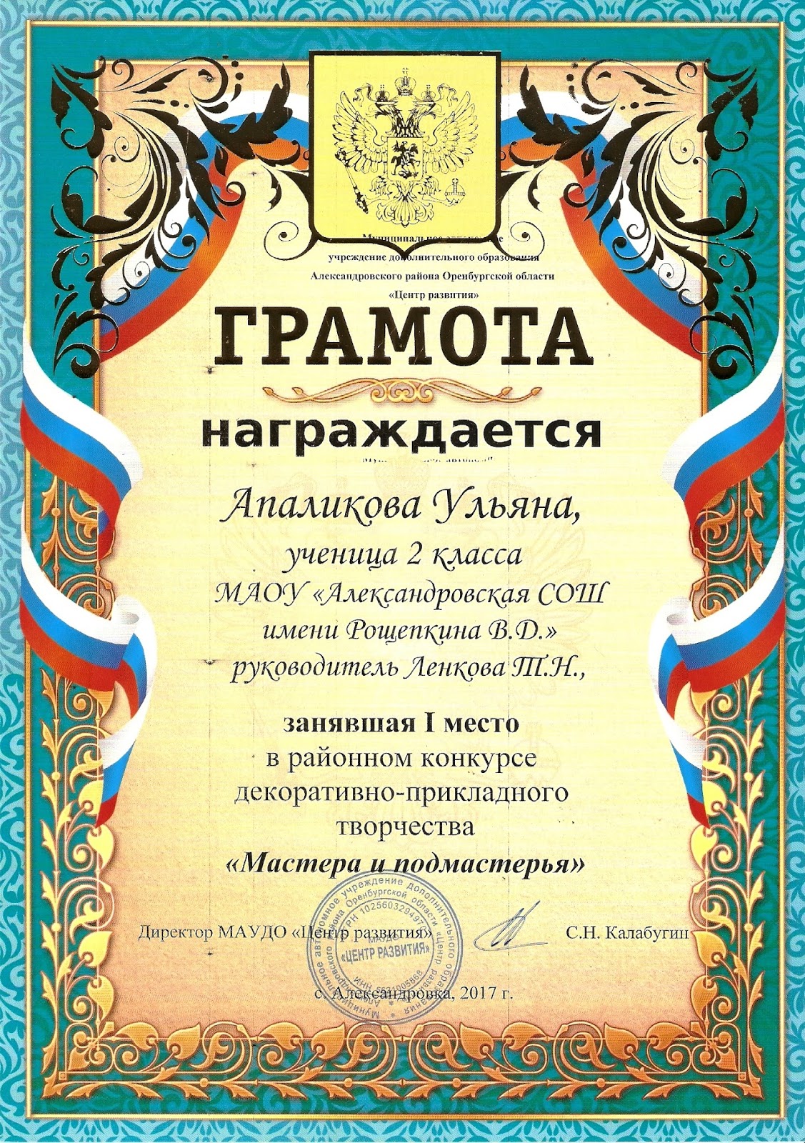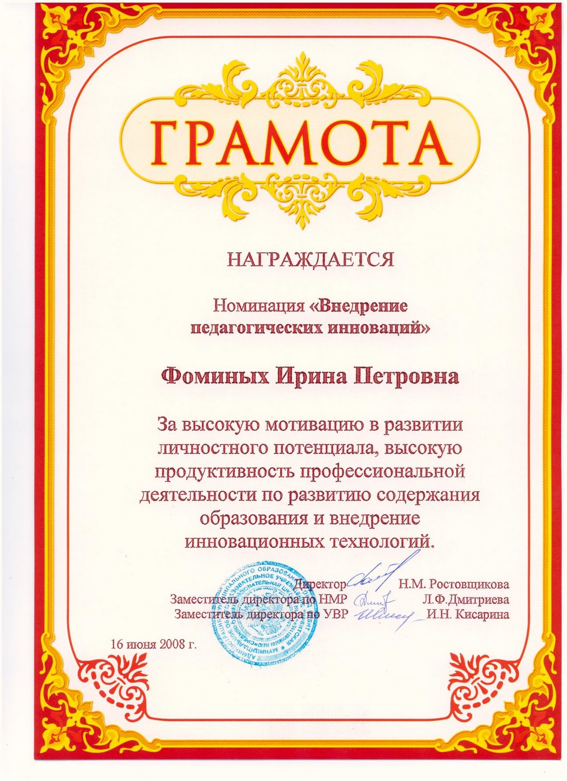 Грамота (похвальная грамота, почетная грамота) – это документ, который выдается в награду за успехи в каком-либо деле. Почетными грамотами награждаются в знак благодарности за проведенную работу, успехи в учебе, достижения в спорте, за благотворительную деятельность, за победу или участие в конкурсах, соревнованиях, выставках.