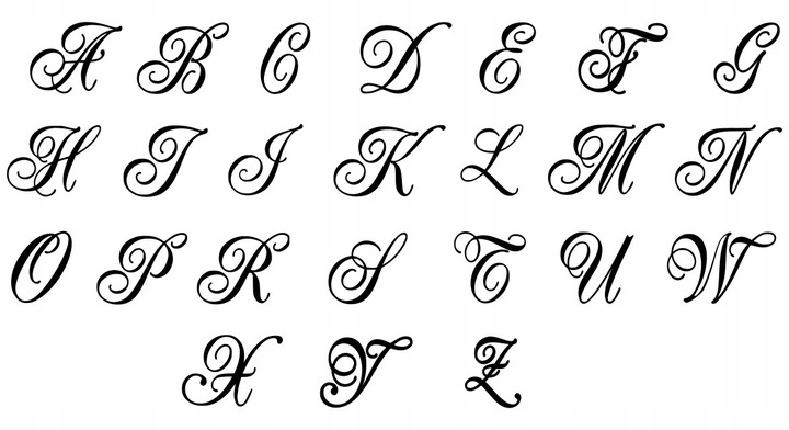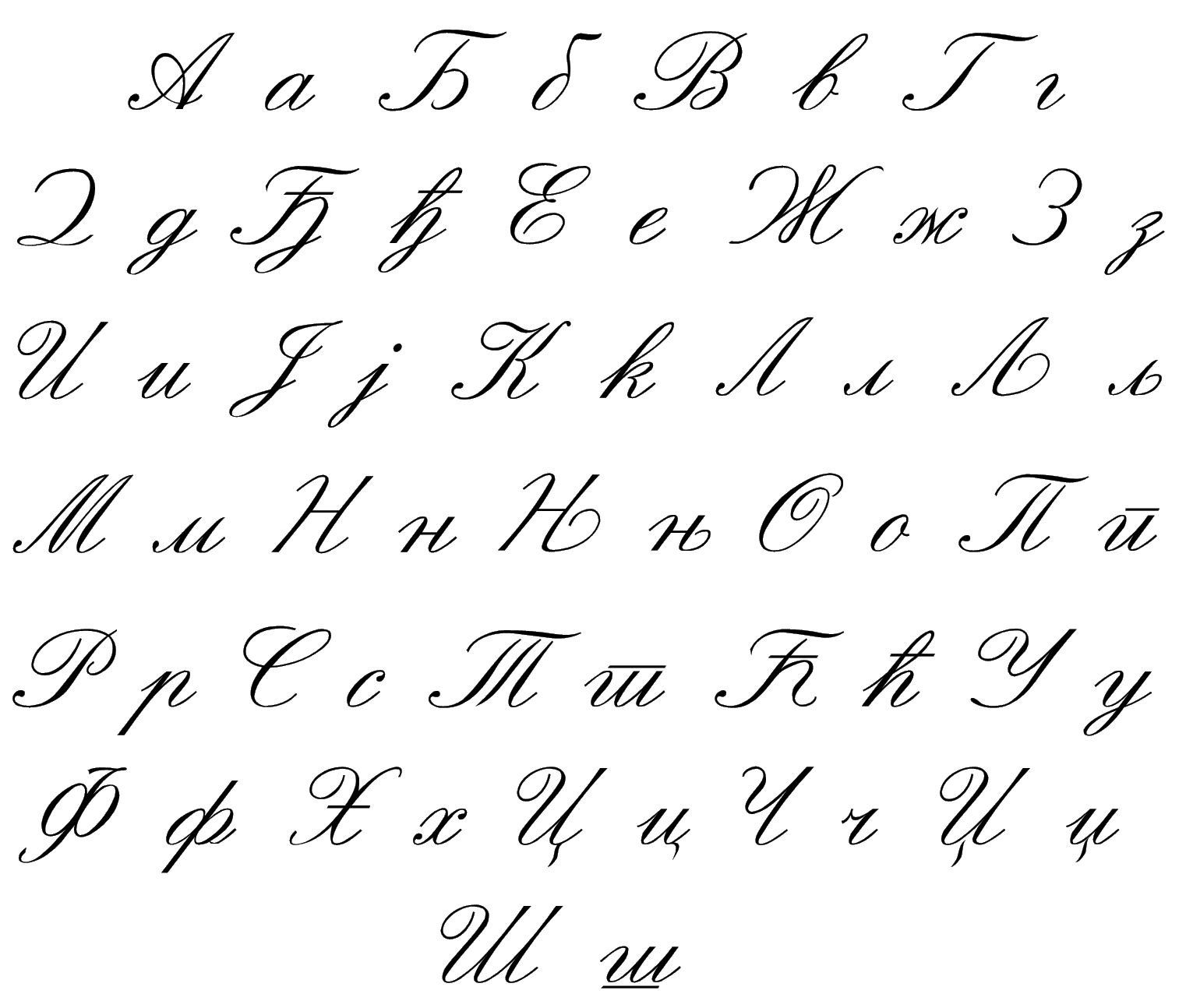 Некоторые люди не могут похвастаться каллиграфическим почерком, поэтому им на помощь приходит трафарет или печатный вариант текста. Ниже приведены варианты алфавита каллиграфического типа.