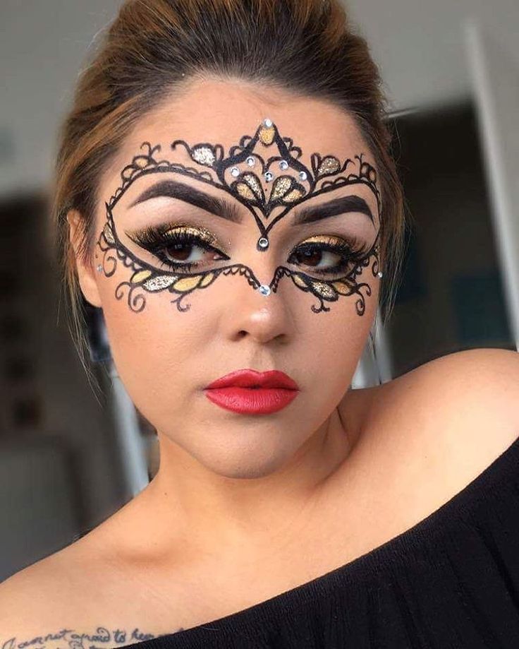 4. Если сделать красивый макияж глаз, то нарисованная маска на лице смотрится не как отдельный рисунок, а как часть мейкапа. Оригинально!