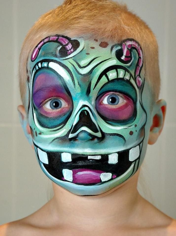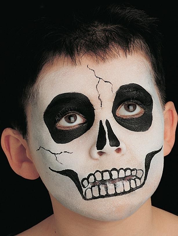 На темнокожей девушке светлая маска смотрится очень эффектно! А стразы и яркий макияж глаз делают лук гламурным.14. Еще одна голубая маска. Правда, в этот раз девушка решила не только нарисовать себе маску, но и выбелить себе лицо, подчеркнув его яркими бровями.