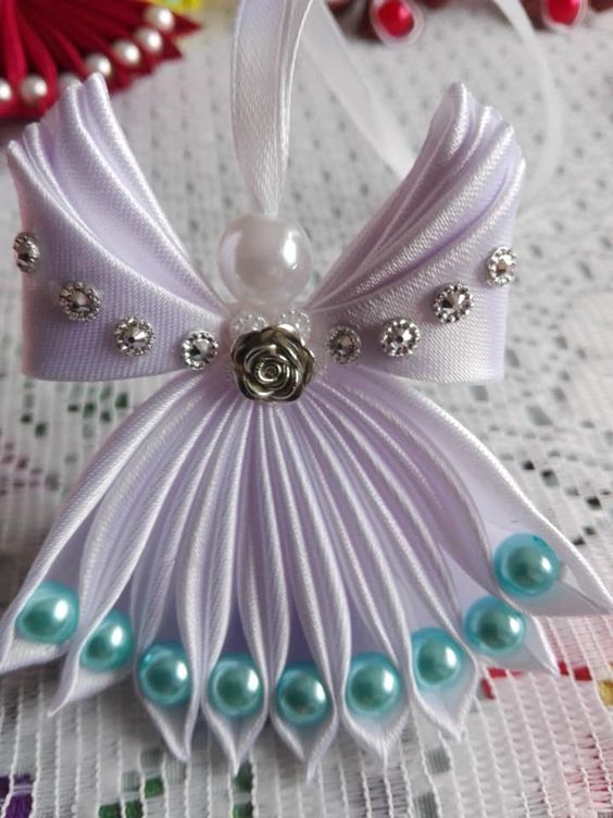 Атлас сочетается со множеством декоративных элементов и это позволяет создавать из него настоящие шедевры искусства. Взгляните на фото поделок из лент, и вы сами убедитесь в их совершенстве.