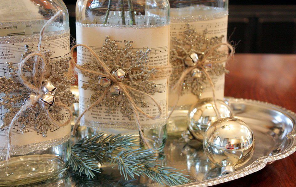 Оригинальные и стильные новогодние подсвечники можно сделать из обычных стеклянных баночек.