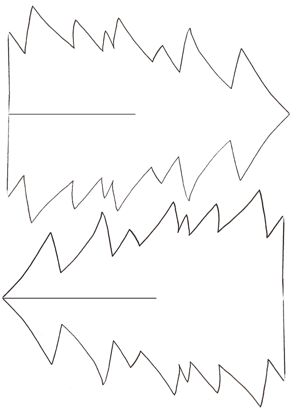 Обратите внимание, что все полоски выровнены по левому краю на печатной форме, но мы собираемся выстроить их симметрично вдоль центральной линии, чтобы создать наше дерево.