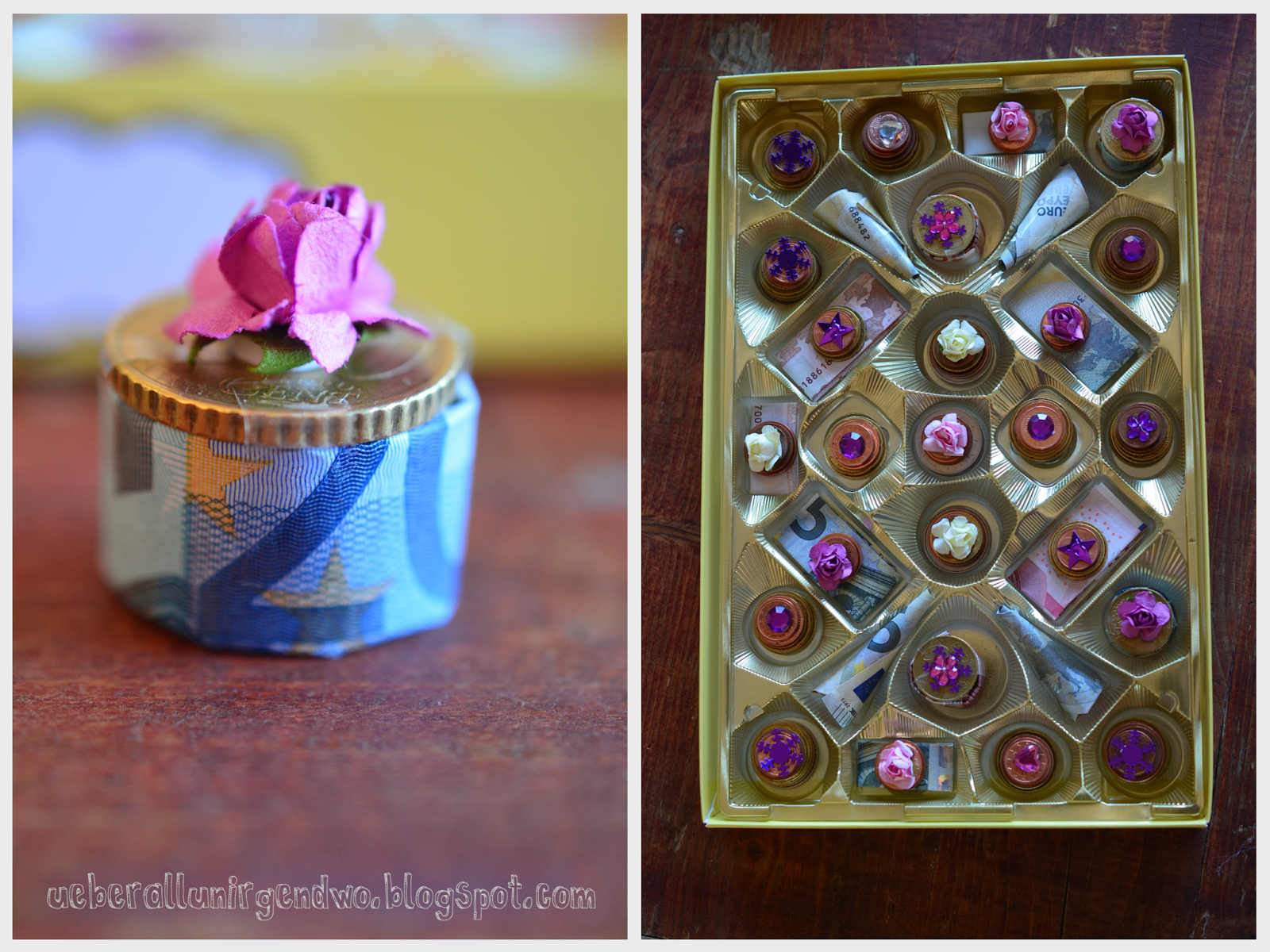 Большой поцелуй : Купите большой сладкий поцелуй, откройте коробку и вложите деньги вместе с поцелуем, а затем снова закройте ее. Особенно это нравится детям.